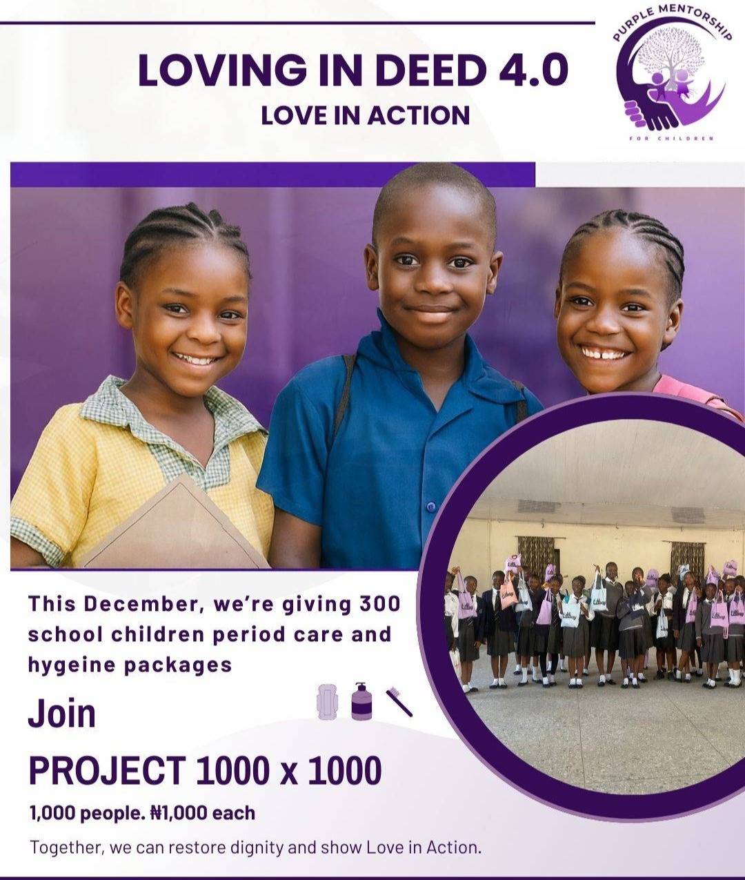 Purple Mentorship for Children has reached over 2,000 children since 2016 with mentorship, hygiene, and care support.